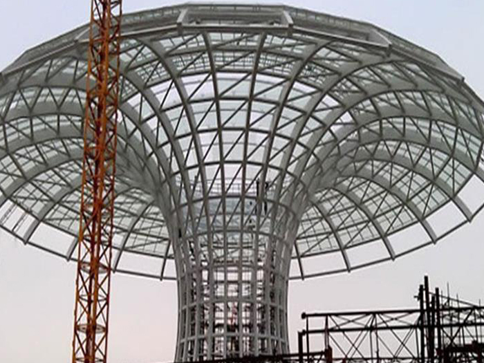 二、球形网架结构因其结构新颖,受力合理,自重轻、用钢量低等优点。如大型体育场馆球形河津螺栓球网架、公共场馆球形网架、电厂河津螺栓球网架、水泥工业球形网架、仓储物流球形网架、河津干煤棚工业球形网架、河津收费站河津加油站球形网架、展览中心、影剧院、商场、航站楼、候车厅、工厂河津车间、仓库、电视塔等球形螺栓球节点网架。国内球形网架结构主要分为:河津焊接球节点网架及螺栓球节点网架两种。螺栓球节点网架其构件工厂内加工量较大,现场安装便捷,适用于现场工期紧,河津施工条件、用电量受制约,网架形状复杂、河津杆件定位困难的异形结构。螺栓球节点球形网架系统基本由河津杆件、螺栓球、支撑支座等组成。按照节点形式可分为交叉河津桁架体系、四角锥体系、三角锥体系等。支撑方式多为固定支座支撑。对于大面积、大跨度及有特殊受力或伸缩要求的网架结构可采用橡胶支座、滑移支座、球铰支座等支撑形式,以满足结构自身的受力稳定、均衡,便于内力释放等设计要求。